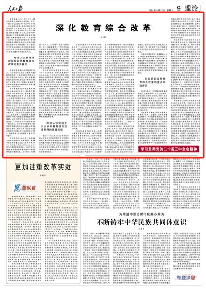《決定》提出:“加快建設(shè)高質(zhì)量教育體系,統(tǒng)籌推進(jìn)育人方式、辦學(xué)模式、管理體制、保障機(jī)制改革。”同時,就深化教育綜合改革提出了一系列重點(diǎn)舉措。我們要認(rèn)真貫徹落實黨中央決策部署,求真務(wù)實抓落實、敢作善為抓落實,實現(xiàn)教育系統(tǒng)性躍升和質(zhì)變,為推進(jìn)中國式現(xiàn)代化提供全方位的人才支撐、智力支持。