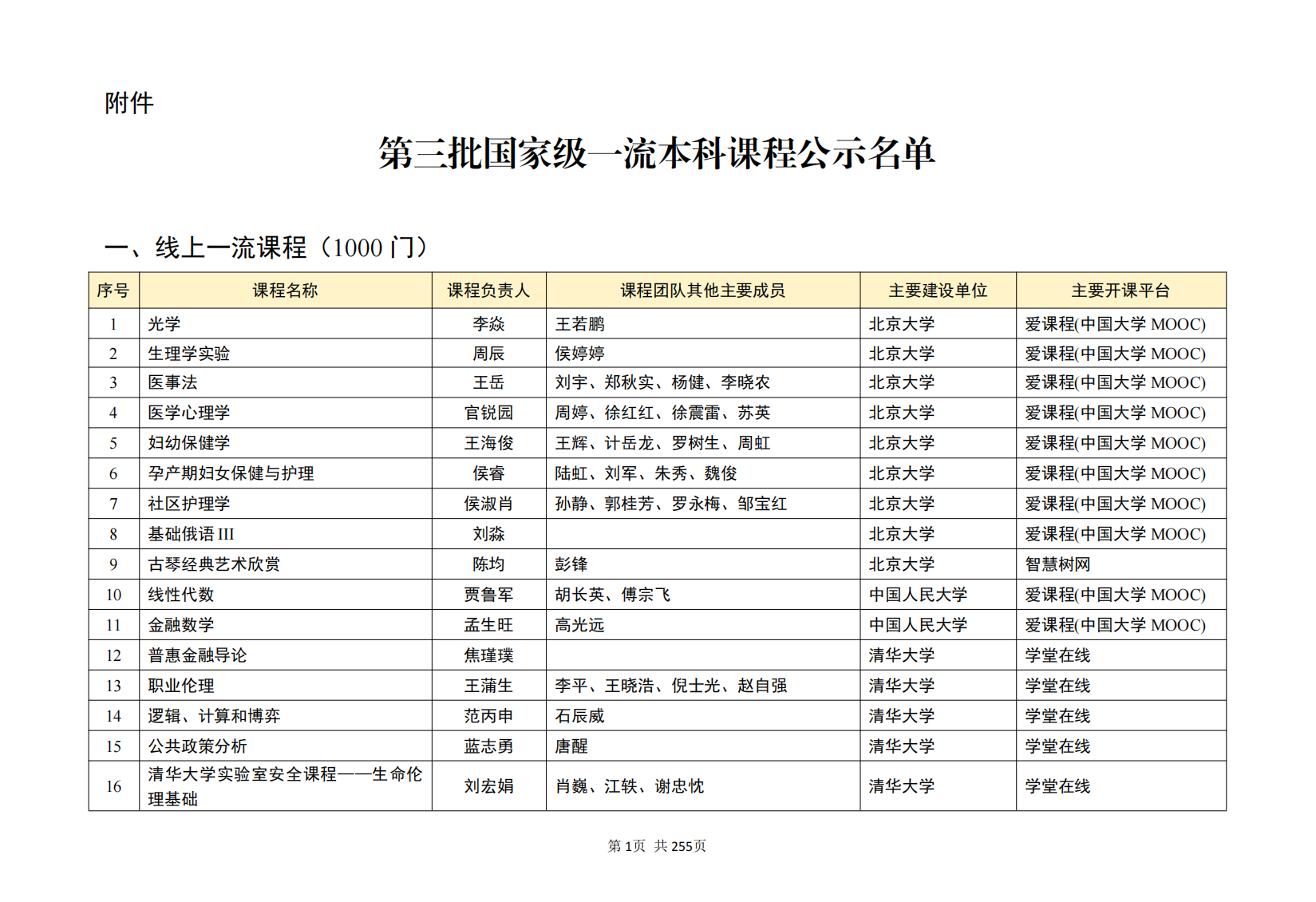 關(guān)于第三批國家級一流本科課程認(rèn)定結(jié)果的公示