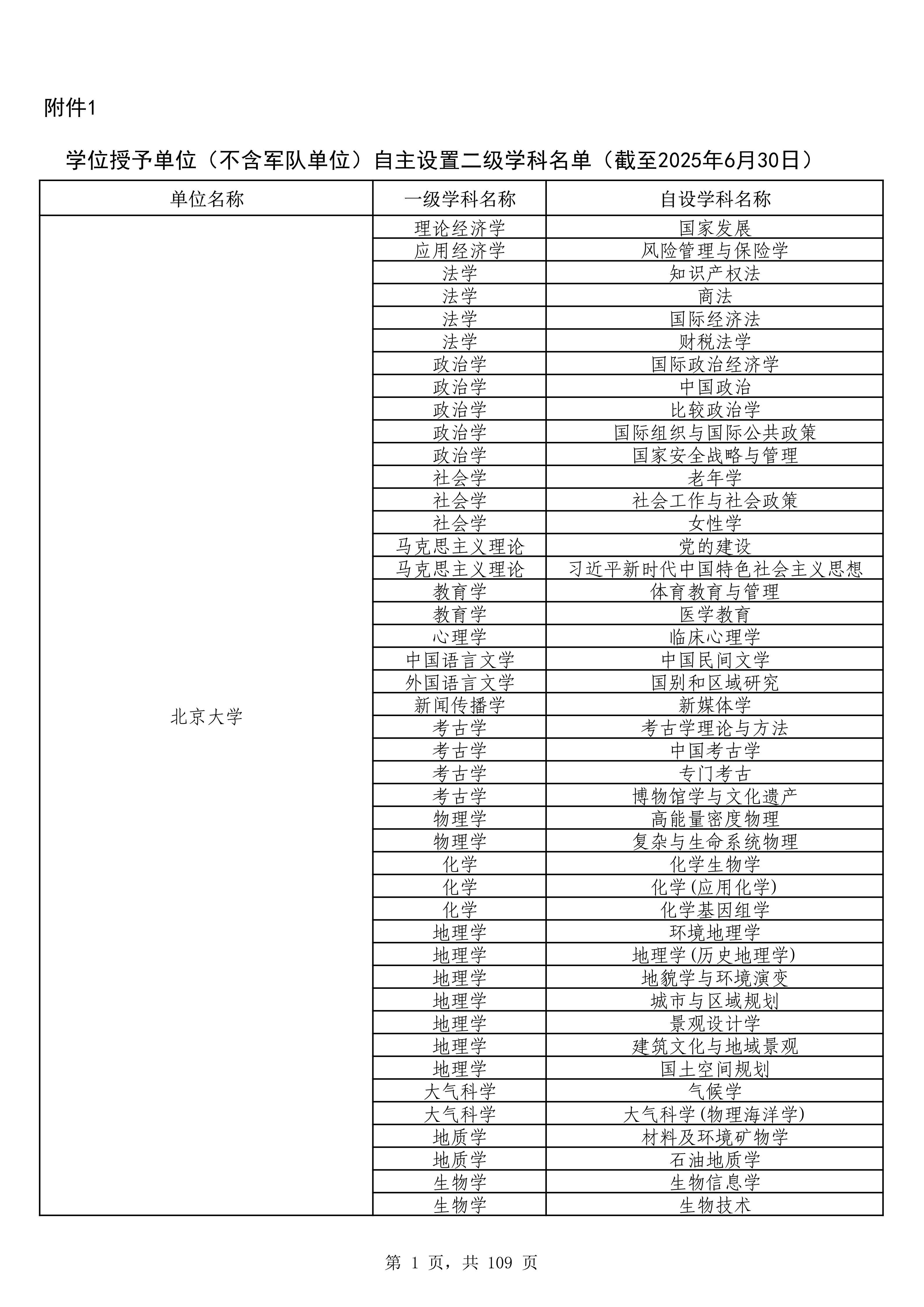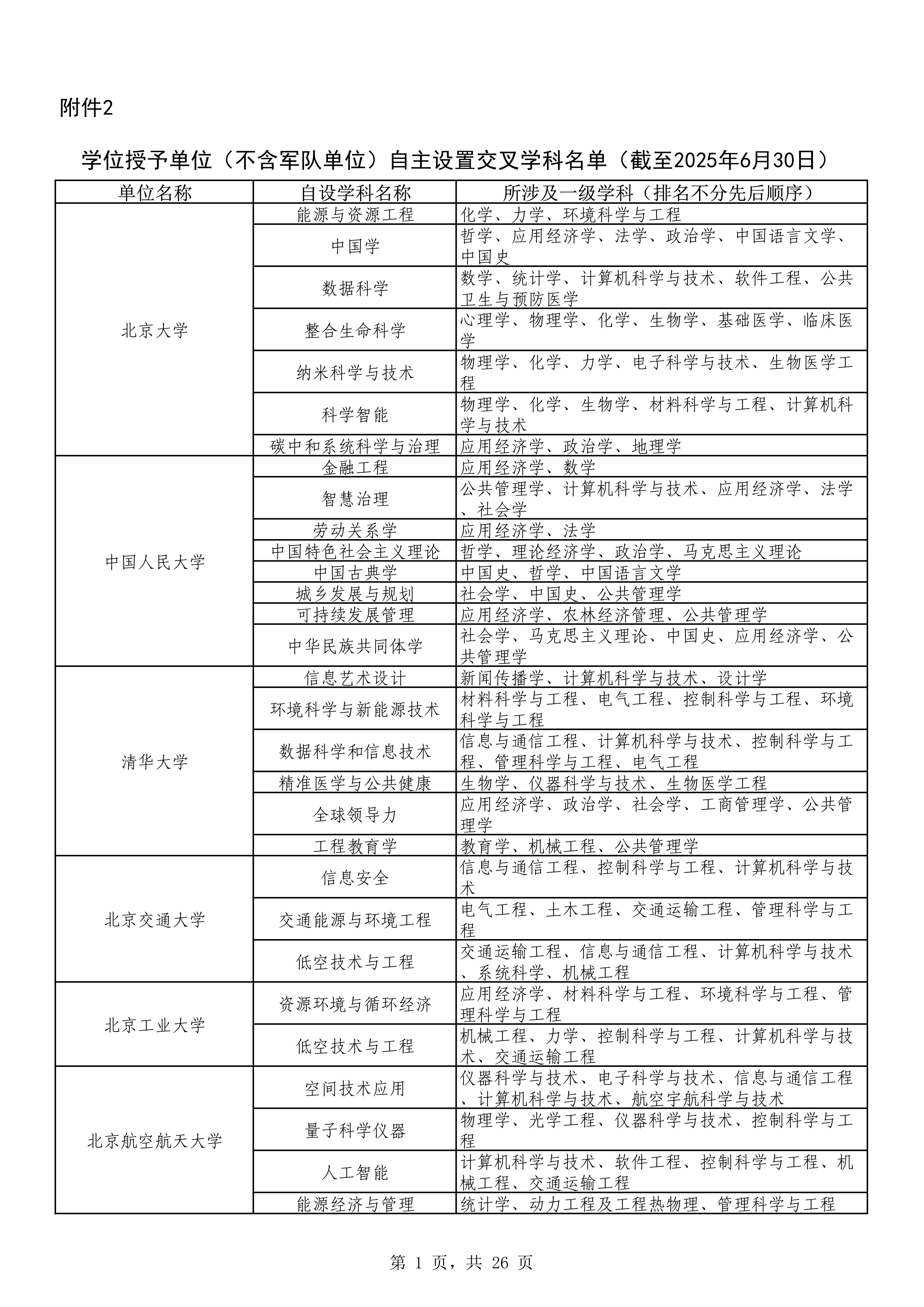 教育部公布2025年上半年學位授予單位自設學科備案名單含二級學科與交叉學科兩類